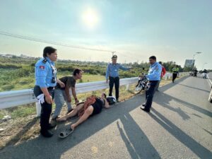 ដោយឡែកខាងសមត្ថកិច្ចបានឲ្យដឹងថាពេលដែលកំពុងប្រចាំការនៅតាមដងផ្លូវត្រង់ចំណុចរង្វង់មូលត្រីកោណស្រាប់តែមានអ្នកដំណើរមកប្រាប់ថាមានគេឆ្លងទន្លេនៅក្បែរគល់ស្ពានទើបលោក សេង ពន្លក អធិការនគរបាលស្រុកពាមរក៍បានដឹកនាំកម្លាំងចុះទៅកន្លែងកើតហេតុនិងបានជួយអន្តរាគមន៍ដឹកយកទាំងម្ដាយនិងកូន ទៅសង្គ្រោះបន្តនៅមន្ទីរពេទ្យបង្អែកអ្នកលឿងភ្លាមៗតែម្ដង។