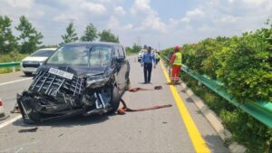 រថយន្ដទំនើបនេះ បើកបរដោយជនជាតិចិន អាយុ២៥ឆ្នាំ និងអ្នករួមដំណើរចំនួន៦នាក់ ក្នុងនោះជនជាតិចិន៦នាក់ និងវៀតណាមម្នាក់។ រថយន្ដខាងលើបើកក្នុងទិសដៅព្រះសីហនុ-ភ្នំពេញ លុះមកដល់ចំណុចកើតហេតុបានផ្ទុះកង់ និងរេចង្កូតបុករនាំងសុវត្ថិភាពផ្លូវល្បឿនលឿនក្រឡាប់តែម្ដង ដែលបានបណ្ដាលឲ្យជនជាតិចិន២នាក់ស្លាប់នៅកន្លែងកើតហេតុ និងរងរបួសធ្ងន់ស្រាល ចំនួន៣នាក់។