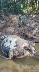 ព្រះវិហារ៖ មន្ត្រីឧទ្យានុរក្ស និងសហគមន៍មូលដ្ឋាន នៅថ្ងៃទី២៣ ខែធ្នូ ឆ្នាំ២០២៥ បានរាយការណ៍ថា បានប្រទេះឃើញសត្វដំរីញី និងកូនដំរីស្លាប់ នៅចំណុចទីតាំងខាងលើ។ តាមការពិនិត្យបឋម សត្វដំរីញី១ក្បាល មានទទម្ងន់ប្រមាណ ៥០០គីឡូក្រាម និងកូនទើបកើត មានទម្ងន់ប្រមាន ៨០គីឡូក្រាម បានស្លាប់ក្នុងទឹកអូរ ដោយដំរីញីមានស្នាមមុតបណ្តាលមកពីគ្រាប់ ឬអំបែងគ្រាប់ផ្ទុះរបស់ថៃឈ្លានពាន និងបានរលូតកូន ស្លាប់ទាំងម្តាយទាំងកូនដំរីផងដែរ។ មន្ត្រីជំនាញបរិស្ថាន បន្តធ្វើការសិក្សាស្រាវជ្រាវ និងចាត់វិធានការបន្តទៀតចំពោះសពដំរី។